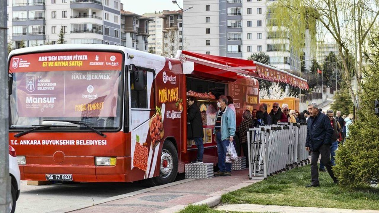 Büyükşehir Belediyesi Halk Ekmek Fabrikası Başkent Marketler ve Mobil Marketler aracılığı ile Ramazan ayı boyunca Başkentin dört bir tarafına et ürünleri satışı ulaştırmayı sürdürüyor.