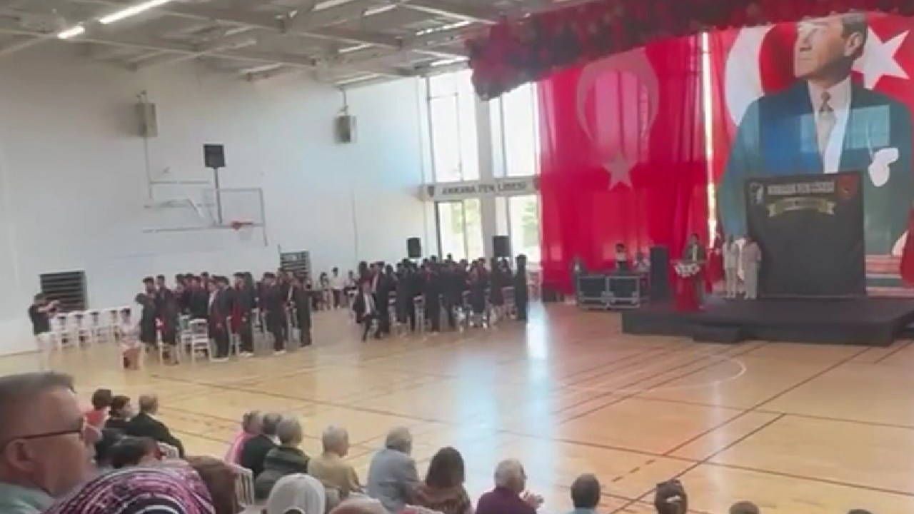 Ankara Fen Lisesi'nde spor salonunda yapılan mezuniyet töreninde, okul müdürü Melek Nur Erdoğan, mezun olan öğrenciler tarafından protesto edildi.