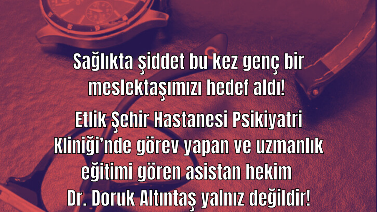 "Sağlıkta şiddet bu kez genç bir meslektaşımızı hedef aldı. Etlik Şehir Hastanesi Psikiyatri Kliniği’nde görev yapan ve uzmanlık eğitimi gören asistan hekim Dr. Doruk Altıntaş, 3 Kasım günü bir hastanın sözlü ve fiziki saldırısı sonucunda darp edilmiş ve yaralanmıştır. Şiddet olaylarının önlenmesinde ve sağlık çalışanlarının güvenliğinin sağlanmasında Sağlık Bakanlığı’na ve kurum yöneticilerine önemli görev ve sorumluluklar düşmektedir. İşyerlerinin mekânsal ve fiziki güvenlik organizasyonları eksiksiz sağlanmalı, sağlık çalışanlarının sağlığını önceleyen protokoller yürürlüğe konmalıdır."