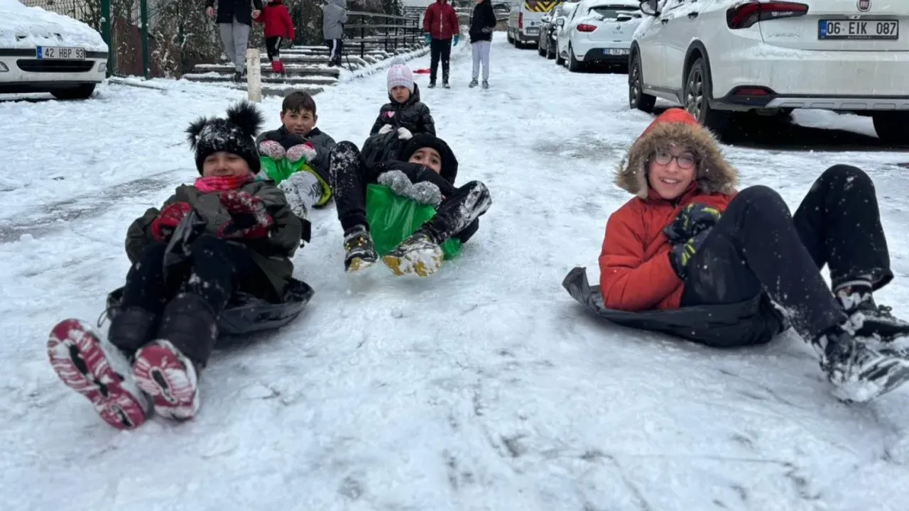 Çocuklar da karın keyfini çıkardı. Kentin birçok noktasında ara sokaklarda çocuklar poşetlerin üzerinde kayıp, eğlendi, kar topu oynadı.