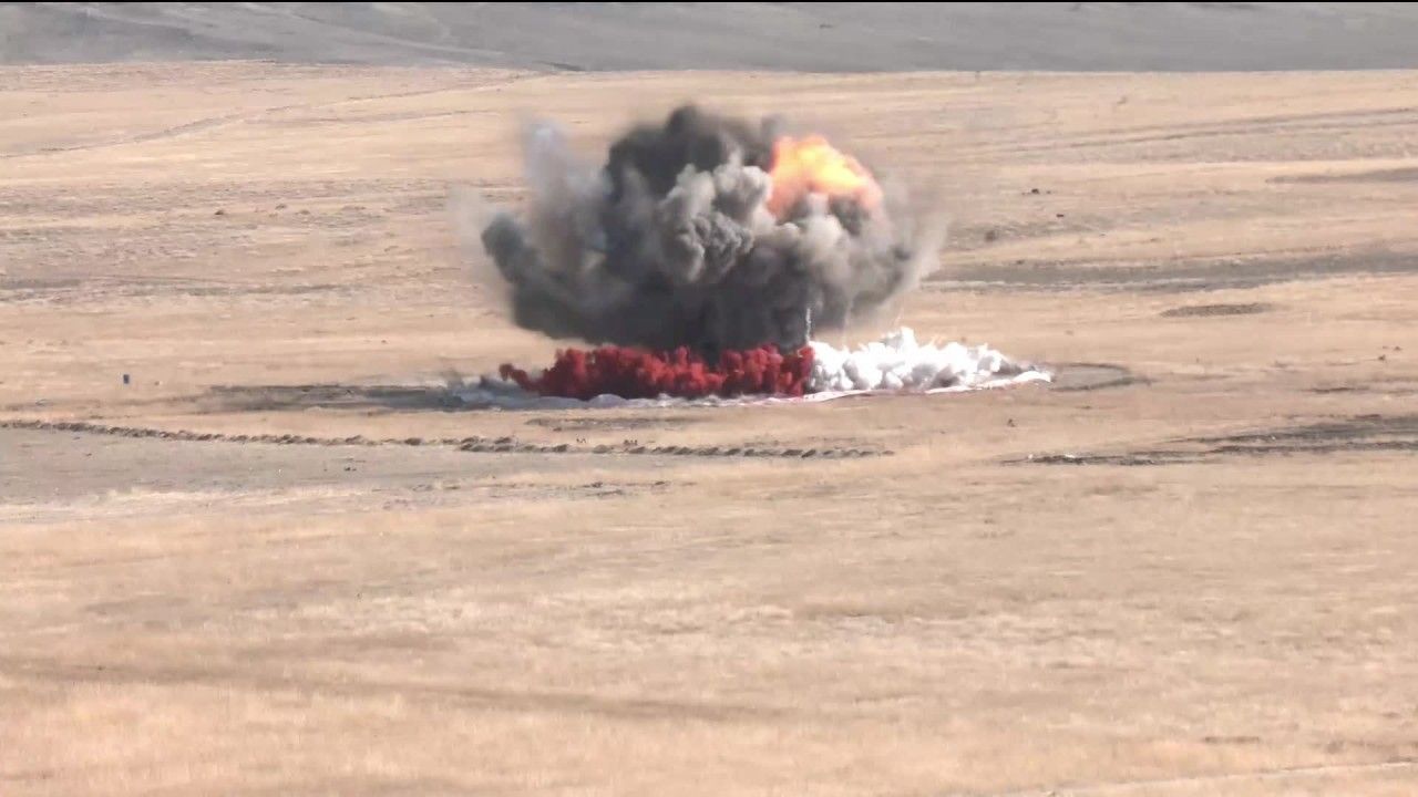 Fırtına obüslerinin hedefleri vurmasından sonra Skorsky tipi helikopterler, topları ve CH-47 Chinook nakliyet helikopterleri, mühimmat dolu konteynerleri alana taşıdı. Alana, havadan taşınan topların hedefe yönelik yaptığı görerek atış sonrası obüsler tarafından tesir atışı yapıldı. Atışların aynı anda hedefe düşmesinin ardından Atak taarruz helikopterinden oluşan helikopter taburu alana gelerek atış yaptı.