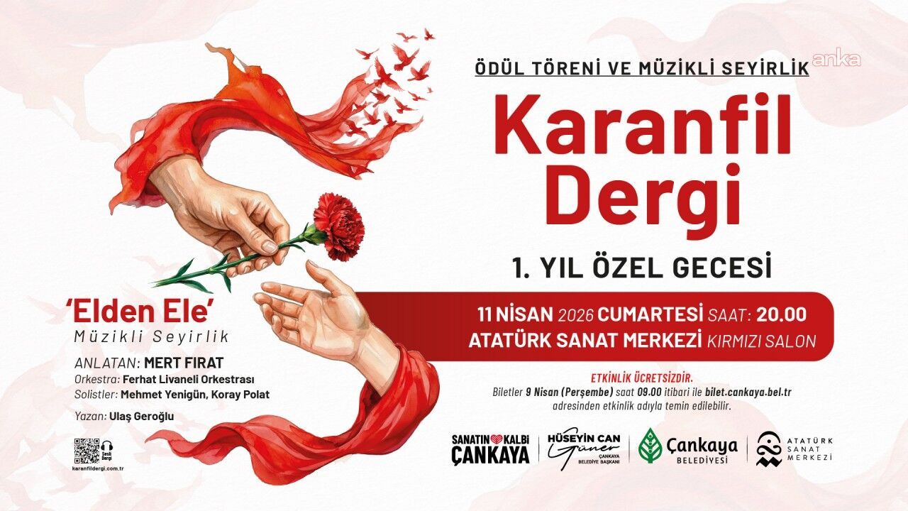 Karanfil Dergi’nin birinci yılına özel etkinlik, 11 Nisan Cumartesi günü saat 20.00’de Çankaya Belediyesi Atatürk Sanat Merkezi Kırmızı Salon’da gerçekleştirilecek.