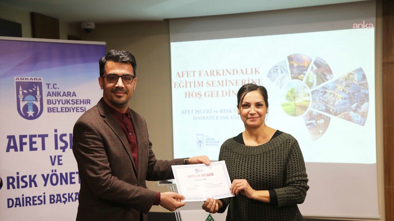 Çankaya Belediyesi, çalışanlarının ve vatandaşların güvenliği için afetlere yönelik bilinçlendirme ve eğitim çalışmalarını sürdürüyor. Personelin afetlere karşı bilinç düzeyini artırmayı amaçlayan eğitimle, acil durumlarda hızlı ve doğru müdahale becerilerinin geliştirilmesi hedeflendi. Eğitim sonunda katılımcıların soruları yanıtlanırken, eğitime katılan personele katılım sertifikası verildi.