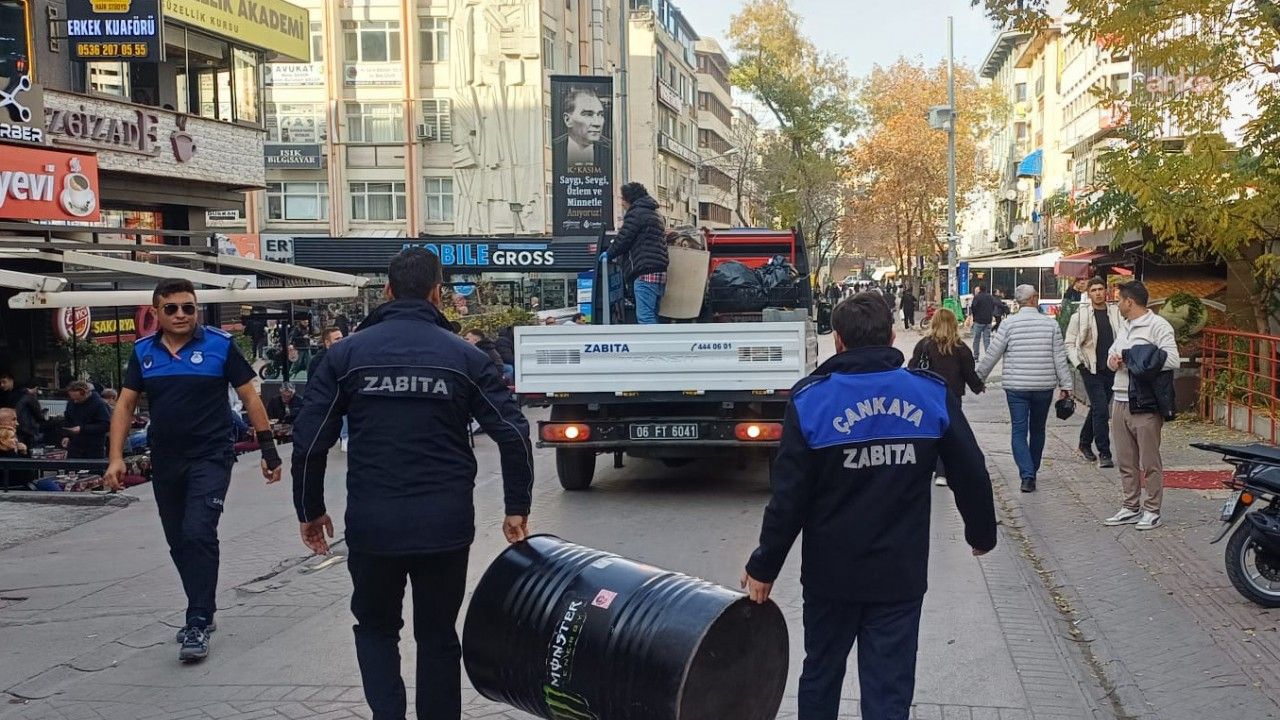 Çankaya Belediyesi Zabıta Müdürlüğü, kamusal alanlarda yaya geçişini engelleyen, görsel ve çevresel kirlilik oluşturan unsurlara karşı ilçe genelinde çalışma yürütüyor.
