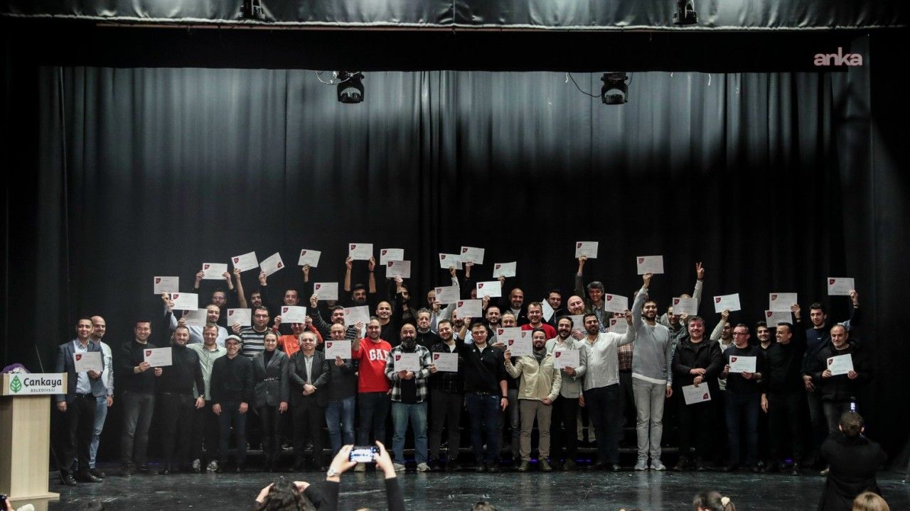 Ata, Berkin Elvan, Deniz ve Uğur Böceği Gündüz Bakımevleri'nde 13 hafta süren eğitim programını başarıyla tamamlayan 60 baba, Yılmaz Güney Sahnesi’nde düzenlenen sertifika töreninde katılım belgelerini çocuklarının elinden aldı.