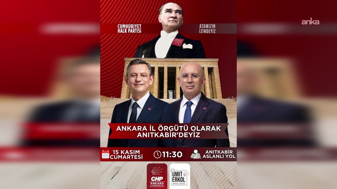 CHP’nin 39’uncu Ankara Olağan İl Kongresi’nde yeniden seçilen CHP Ankara İl Başkanı Ümit Erkol, il örgütüyle beraber Ata’nın huzuruna çıkacak. CHP Ankara İl Örgütü’nün Anıtkabir ziyareti 15 Kasım Cumartesi günü, saat 11.30’da yapılacak.