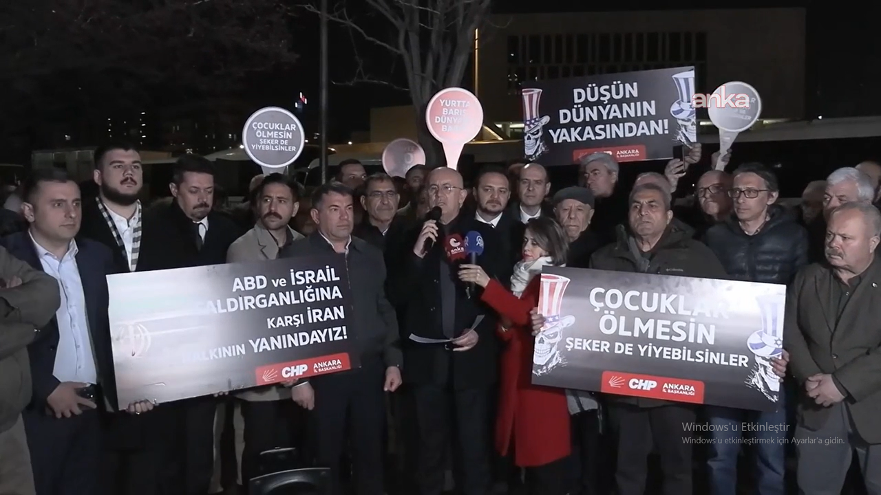 ABD ve İsrail’in İran’a yönelik saldırılarına karşı CHP’nin protesto gösterileri sürüyor. Ankara İl Başkanlığı, ABD Büyükelçiliği önünde “Savaşa dur diyoruz" sloganıyla eylem düzenledi. CHP Ankara İl Başkanı Ümit Erkol, basın açıklamasında şunları kaydetti:
