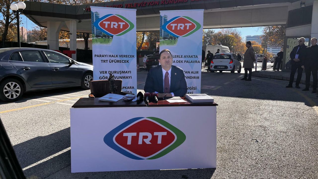 TRT binasının önüne stüdyo kurma nedenini “Çünkü içerideki stüdyolar bize hiç yer vermiyor. İçerdeki stüdyolar bize iftira atmak üzerine kurgulanmış. Biz de masamız, sandalyemiz, koltuğumuz, TRT görsellerimizle birlikte kurduk. Buraya 86 milyon kişi para veriyoruz ama 86 milyonun sesi değil bir kişinin sesi çıkartılıyor” şeklinde açıkladı.