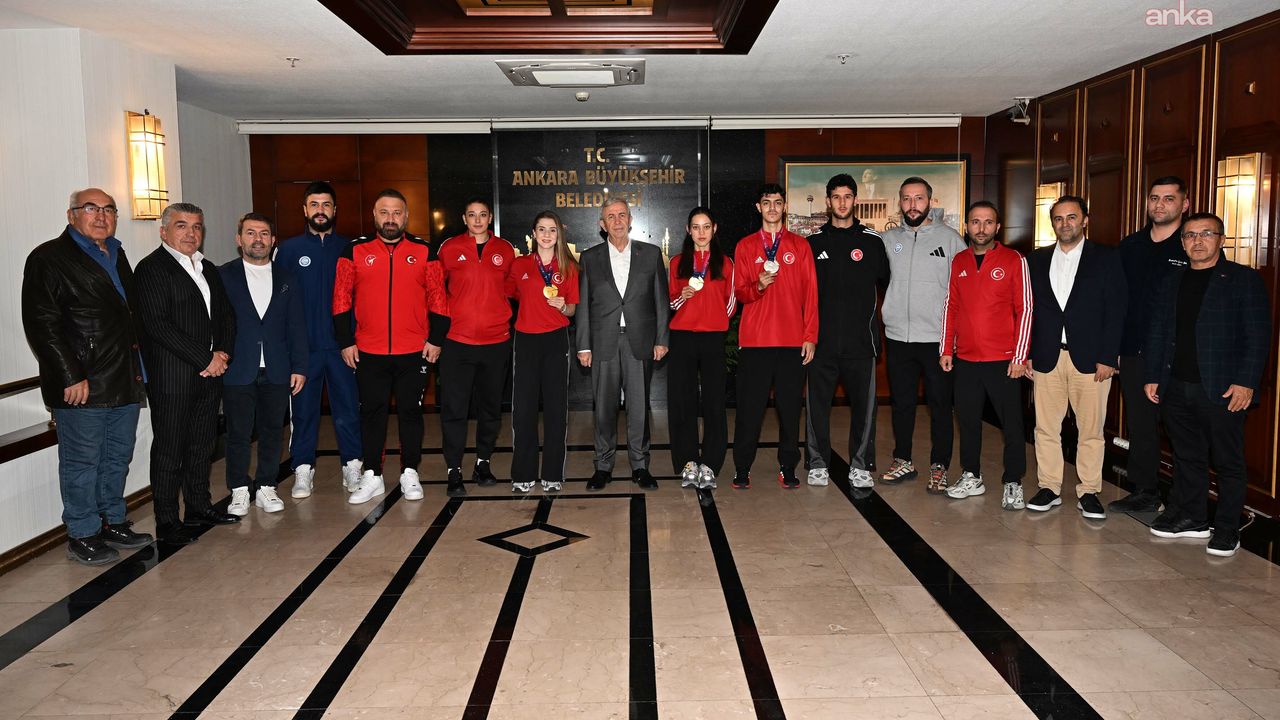 Şampiyon sporcular, Esenboğa Havalimanı’nda mehteran takımı eşliğinde coşkulu bir törenle karşılandı. Törenin ardından sporcular, Ankara Büyükşehir Belediye Başkanı Mansur Yavaş’ı ziyaret etti.