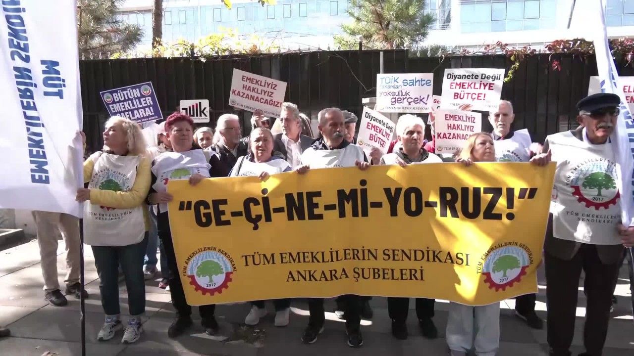 Tüm Emeklilerin Sendikası üyeleri, TÜİK önünde "darbeye, kayyum karşı, özgür haber alma hakkı ve demokrasi için" basın açıklaması yaptı. Açıklamayı sendikanın Keçiören Şube Başkanı Zerrin İğdeler okudu.