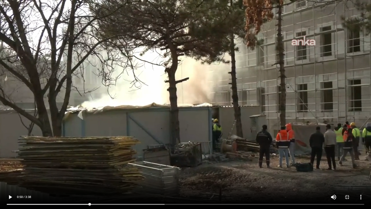 İçişleri Bakanlığı'nın bahçesindeki tadilat alanında bulunan konteynerda, elektrik sisteminden kaynaklı yangın çıktı.