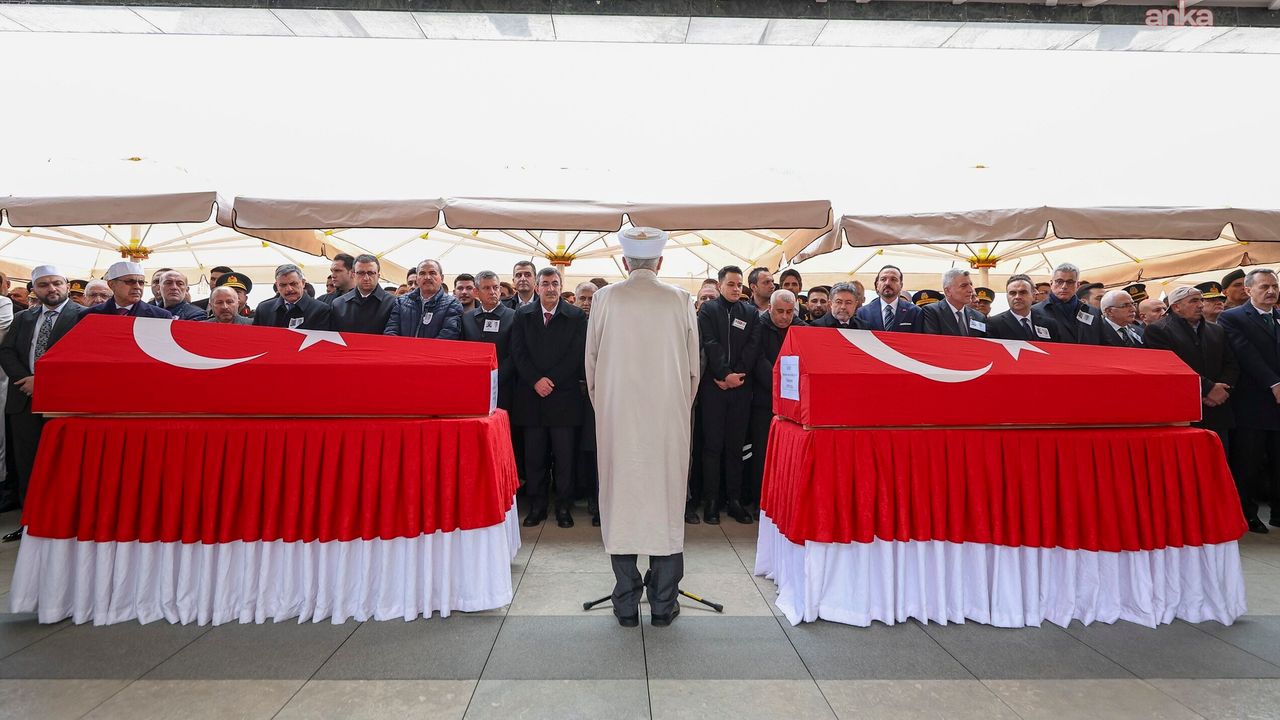 Ahmet Hamdi Akseki Camisi'nde öğle vakti düzenlenen cenaze törenine, şehitlerin aileleri ve yakınlarının yanı sıra Cumhurbaşkanı Yardımcısı Cevdet Yılmaz, CHP Genel Başkanı Özgür Özel, MHP Genel Başkanı Devlet Bahçeli, Milli Savunma Bakanı Yaşar Güler, İçişleri Bakanı Mustafa Çiftçi, Aile ve Sosyal Hizmetler Bakanlığı Mahinur Özdemir Göktaş, Sağlık Bakanı Kemal Memişoğlu, Tarım ve Orman Bakanı İbrahim Yumaklı, Ticaret Bakanı Ömer Bolat ve Ankara Büyükşehir Belediye Başkanı Mansur Yavaş’ın da aralarında olduğu siyasetçiler ile sivil ve askeri yetkililer katıldı.