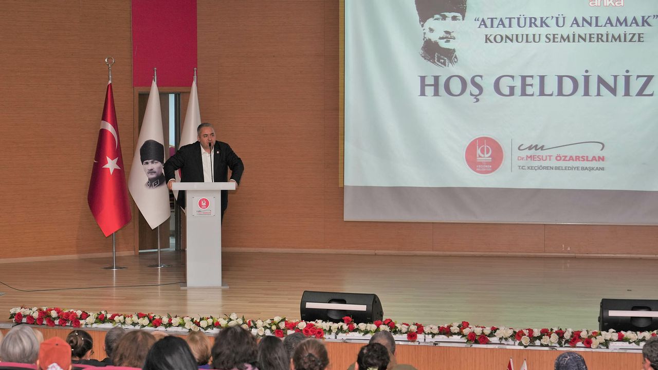 Yunus Emre Kültür Merkezi’nde Keçiören Belediyesi Meslek Edindirme Kursları (KEÇMEK) kursiyerlerine yönelik gerçekleştirilen “Atatürk’ü Anlamak” başlıklı seminer programına, Belediye Başkanı Mesut Özarslan, Belediye Başkan Danışmanı İlahiyatçı Yazar Ayşe Sucu, belediye başkan yardımcıları ve muhtarlar ile çok sayıda kursiyer katıldı.