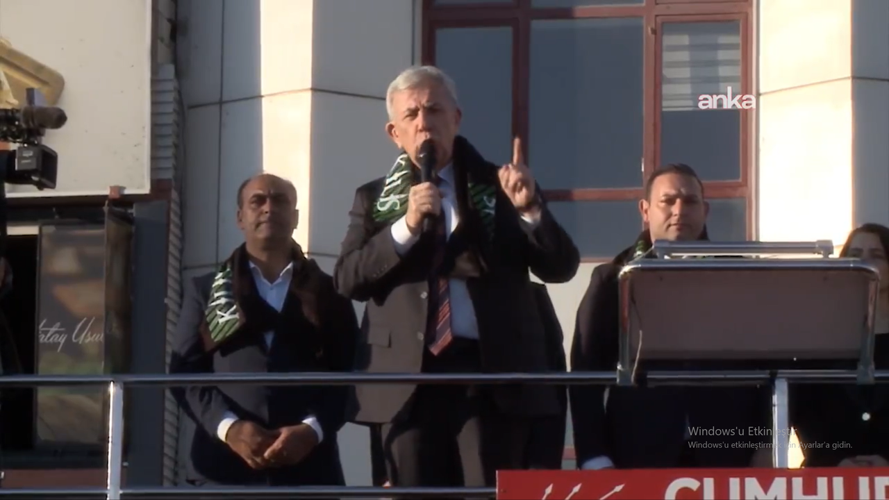 Yani halk iktidara 'Sizler bizi korkutamazsınız. Bir değişiklik yaptık memnun kaldık ve işte o değişikliği şimdi iktidarda yapmak durumundayız' dedi. 'Biz gidersek maaş alamazsınız, biz gidersek ekonomi batar' diyerek halkı korkutuyorlar. Ekonomi bozuldu, asayış bozuldu. Artık iktidarın değişme zamanı gelmiştir. Bizler tekrar seçildikten sonra bütün belediye başkanları olarak genel merkezimiz bir memnuniyet anketi yaptı. Bir yılın sonunda yapılan memnuniyet anketinde özellikle yeni seçilen bütün belediyelerimizde başarı sevgi ve ortalama yüzde 58 memnuniyet vardı. Eğer bu şekilde devam ederse mutlaka iktidarın değişmesi sonucunu doğuracak. Dolayısıyla bir şeyler yapılması lazımdı ve CHP'li belediyelerin tamamına operasyonlar başladı. Onlar sütten çıkma ak kaşık CHP'li herkes suçlu var mı böyle bir şey. Daha bugün sabah okuduk ki Et ve Süt Kurumu, iktidarın Türkiye'de hayvancılığı bitirdiği yetmemiş gibi dışarıdan et ithal ediyor. Bir bakıyorsunuz dışarıda kendi ortak olduğu firmadan ithal ediyor. Bakalım ne yapacaklar, Bakalım tutuklayacaklar mı? Türk parasının üzerinde imzası olan insan tutuklu.