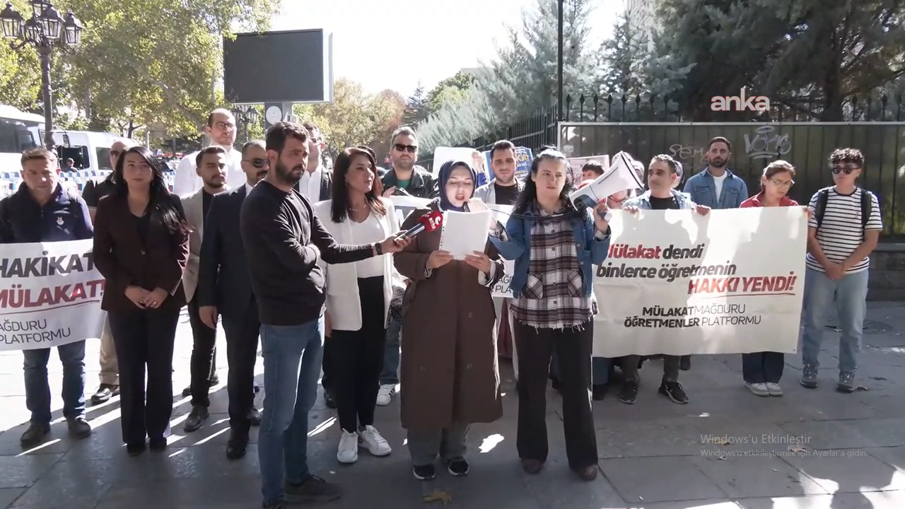 Mülakat mağduru öğretmenler, Milli Eğitim Bakanlığı (MEB) önünde basın açıklaması yaptı. Açıklamada, "Bireysel davalarda kazanılan haklar, mağdur olan öğretmen adayları için önemli bir hukuki zafer olsa da sorunun köklü çözümü için mülakat sisteminin yapısal olarak yeniden düzenlenmesi gerekliliğini ortaya koymaktadır. Bizlere geçmişte sunmuş olduğunuz çözüm yollarını uygulayarak net çözüm istiyoruz. Bu ülkenin mülakatlarla, sahte diplomalarla kaybedecek bir saniye daha vakti yoktur. Mülakata hayır liyakata evet diyoruz. Adalet arayışımızdan asla vazgeçmeyeceğiz" ifadelerine yer verildi.
