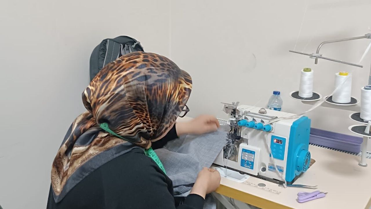 Kadınların meslek edinmesi, el becerilerini geliştirmesi ve ekonomik hayata katılımını desteklemek amacıyla açılan dikiş kursunda kursiyerler, nevresim ve pikeleri özenle hazırlayarak, ihtiyaç sahibi ailelere ulaştırmak üzere paketliyor.