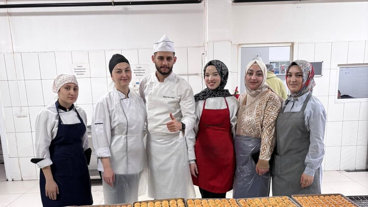 Şef Mahmut Dolmacı’ya ait “Dolmacızade” baklava börek imalathanesinde gerçekleştirilen eğitimde kursiyerler; hamur hazırlanmasından iç harcın oluşturulmasına, şekil verme ve pişirme aşamalarına kadar tüm süreci birebir deneyimleme fırsatı buldu. İmalathane ortamında yapılan uygulamalar sayesinde kursiyerler mesleki becerilerini geliştirirken, hijyen ve üretim standartları konusunda da bilgilendirildi.