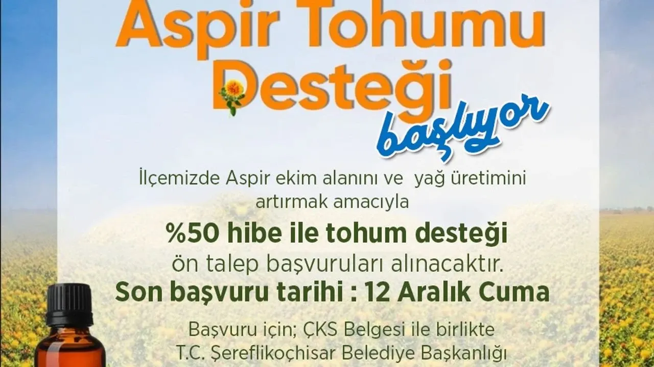 Başkan Koçak, üreticilere yönelik yüzde 50 hibeli aspir tohumu desteği için ön talep başvurularının alınmaya başladığını belirterek, “Aspir ekim alanını genişletmek ve yağ üretimini artırmak amacıyla önemli bir adım atıyoruz. Çiftçimizin emeğine değer katmak için desteklerimizi sürdürüyoruz.” dedi.