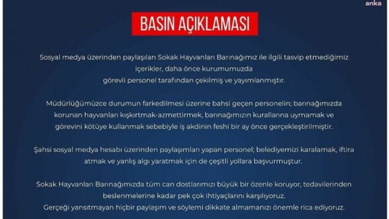 Sincan Belediyesi yetkilisi, ANKA Haber Ajansı’na yaptığı açıklamada, barınaktaki vahşet görüntülerinin, daha önce hakkında tutanak tutulan üç personelin kurduğu kumpas sonucunda yaşandığını öne sürdü. Belediye yetkilisi, ANKA’ya şu açıklamayı yaptı: