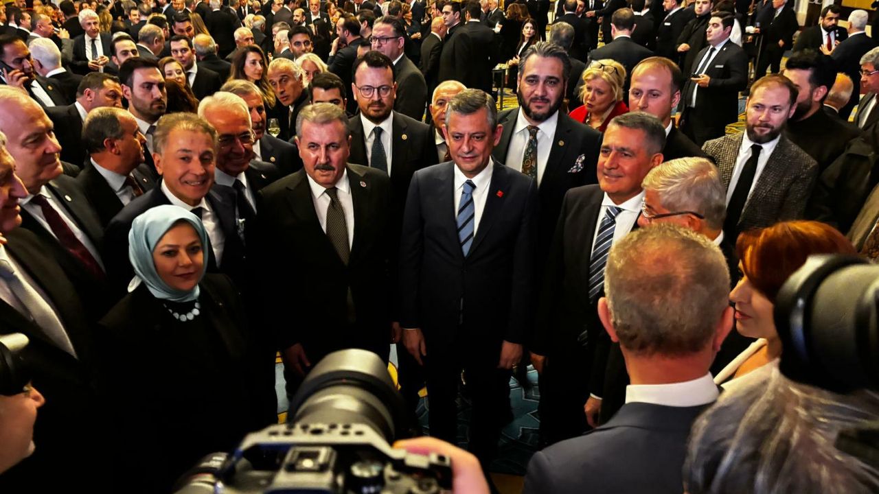 CHP Genel Başkanı Özgür Özel, kokteyl esnasında TÜSİAD Başkanı Ömer Aras ve salonda bulunan diğer siyasi parti genel başkanları ve siyasetçilerle sohbet etti.