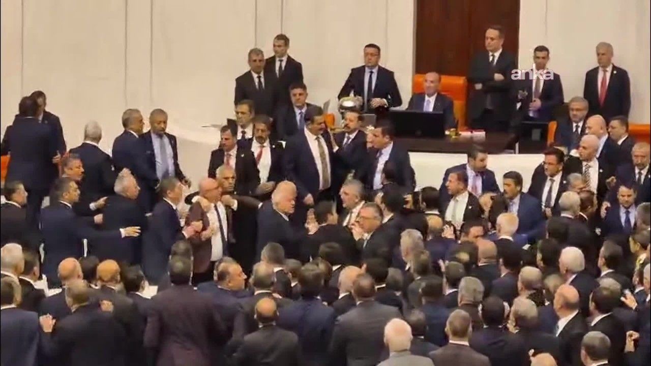 Bu sırada TBMM Başkanvekili Pervin Buldan'ın İmralı Heyeti olarak Cumhurbaşkanı ile görüşmek üzere Cumhurbaşkanlığı'na gitmesi nedeniyle TBMM Başkanvekilliği görevini yapan AK Partili Bozdağ, Akın Gürlek'i yemin için kürsüye davet etti. Bu sırada CHP'liler kürsüye yürüyüp, Gürlek'in yemin etmesini engellemeye çalıştı. AK Partililer de Gürlek'in bulunduğu kürsüyü ablukaya aldı ve Gürlek yeminini sürdürdü. Bu sırada CHP'liler ıslıklar, yuhalamalar ve masalara vurarak Gürlek'i protestoyu sürdürdü, ardından tekmeli, yumruklu kavga başladı. Bunun üzerine Bozdağ, birleşime 15 dakika ara verirken, Gürlek yeminini tamamlayamadı.