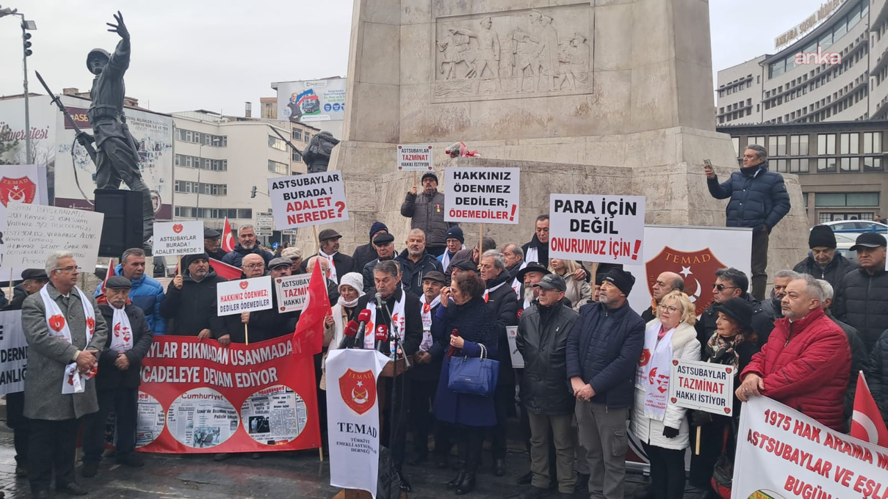 TEMAD üyeleri, 1975 yılından bu yana sürdürdükleri astsubayların hak arama mücadelesinin 51'inci yıl dönümünde Ulus Atatürk Anıtı önünde basın açıklaması yaptı.