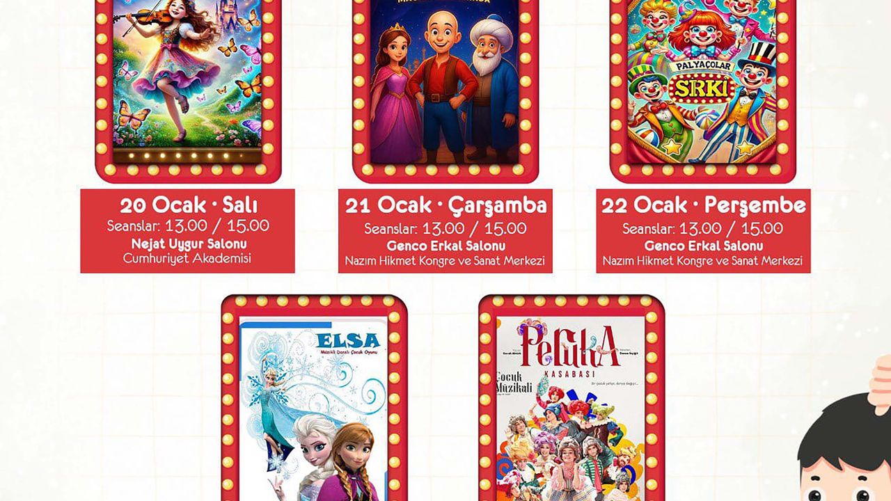 Şenlik kapsamında 19-31 Ocak tarihleri arasında birbirinden eğlenceli çocuk oyunları, ücretsiz olarak 13.00 ve 15.00 seanslarıyla ilçenin farklı salonlarında minik izleyicilerle buluşacak.