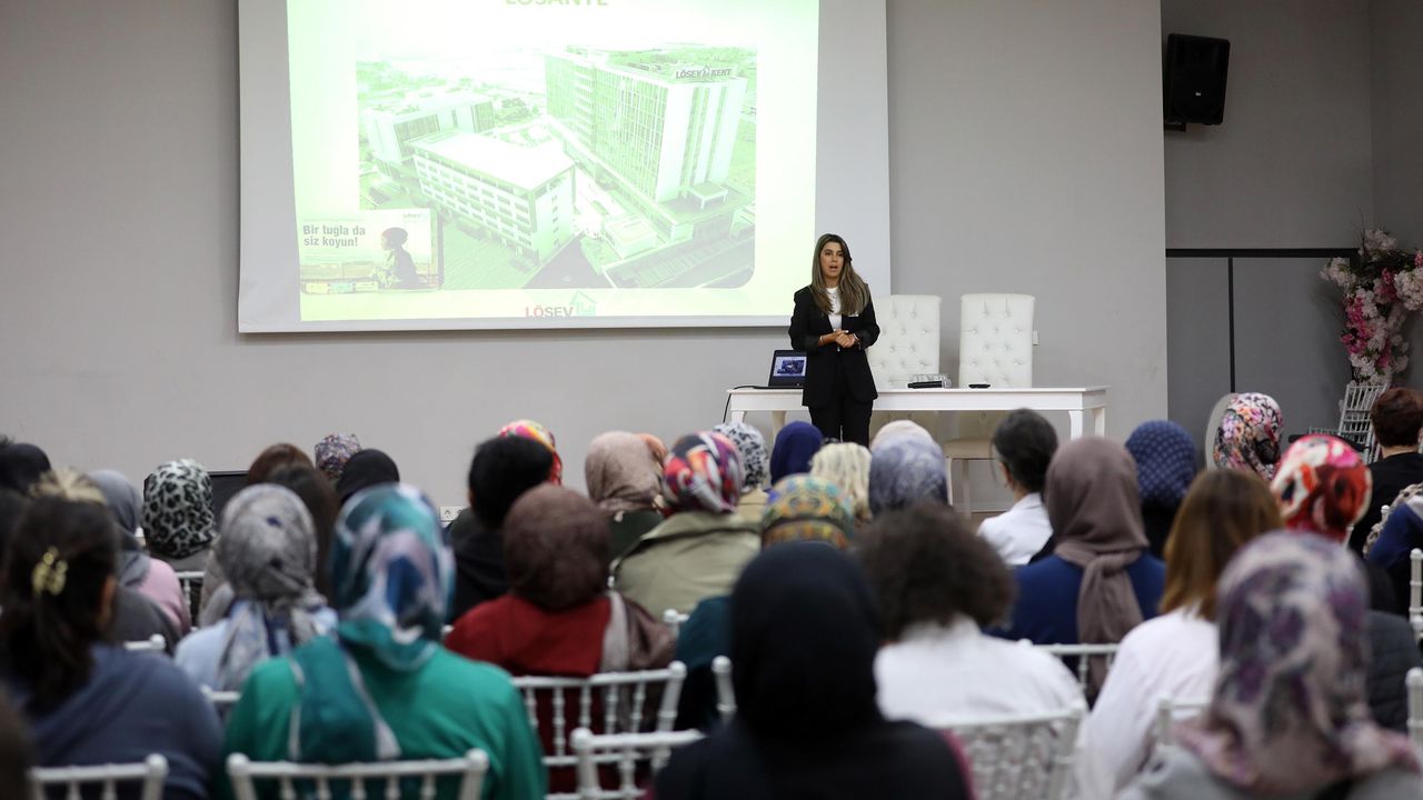 Seminerde, LÖSEV Halkla İlişkiler Sorumlusu Yekta Doğan LÖSEV’in çalışmalarını anlatırken sağlıklı yaşamın kanseri önlemede büyük önem arz ettiğini vurguladı.